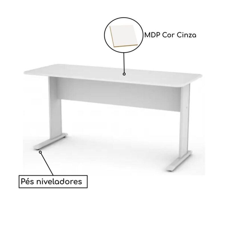 Mesa para Escritório 80x60cm sem Gavetas Cinza – Móveis Supremo Goiânia
