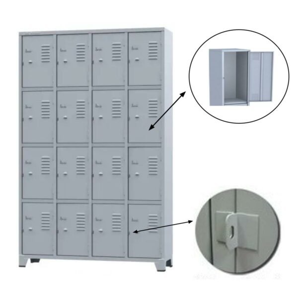 Home Destaques Roupeiro de Aço Cinza com 16 Portas Pés em Aço – 3204
